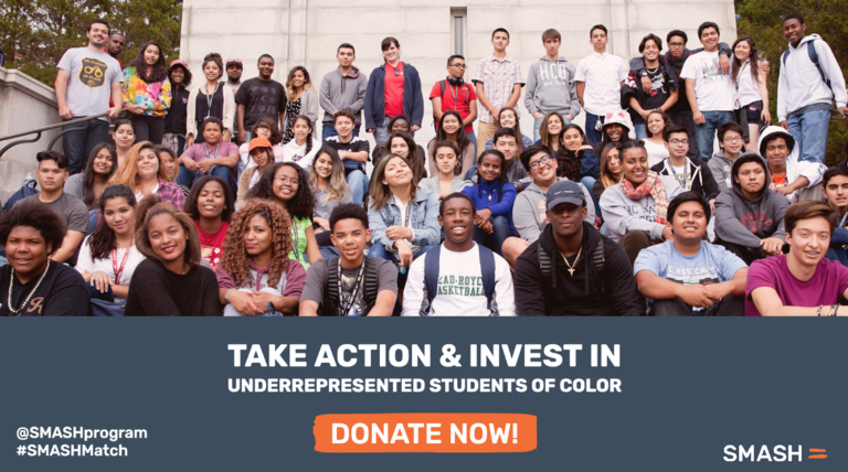 Following a wave of social justice activism in the summer of 2020, SMASH – a nonprofit organization dedicated to helping provide students of color access to college and career readiness resources – saw the opportunity to ramp up fundraising and spread the word about its cause. SMASH created #SMASHmatch, a six-week campaign during June - July 2020 with the goal to raise $500,000 through a 1:1 match from a SMASH donor. The goals of the organization’s social media push and #SMASHmatch campaign were two-fold:- Build greater awareness of SMASH and how the organization is looking to develop the next generation of socially conscious STEM leaders, providing corporate donors a meaningful cause to support in the fight against systemic racism.